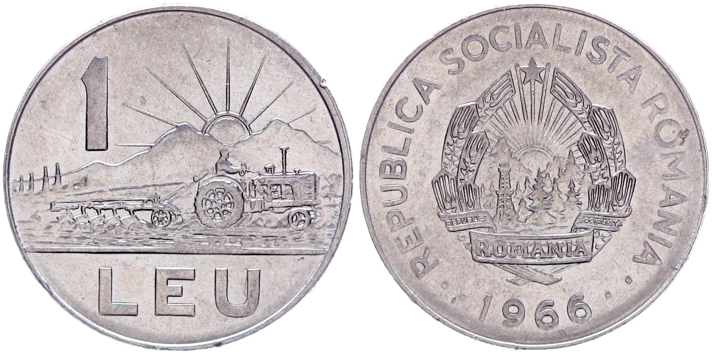Купить монету Румыния 1 Лей 1966 год KM 95 Техника Трактор (BOX805) за 80р.