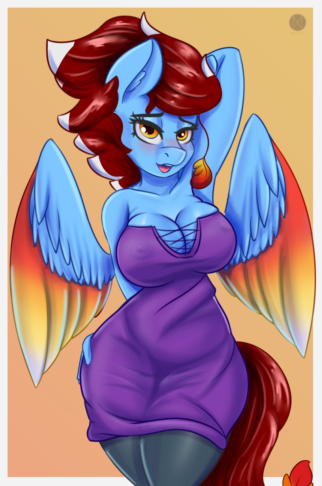 3043372 - suggestive, artist:cali luminos, pegasus, anthro, breasts, cleavage,