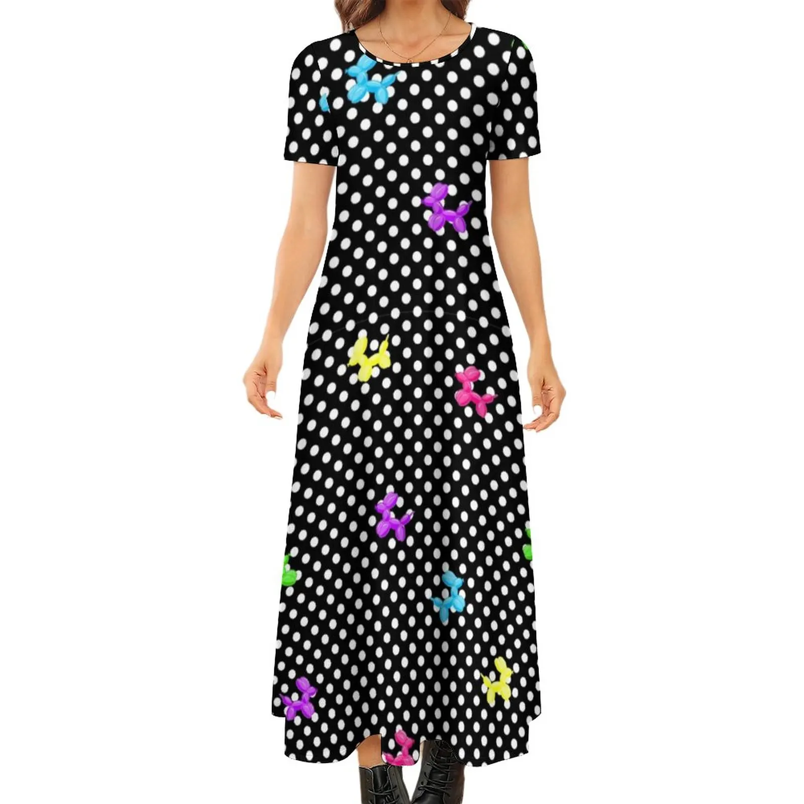 Платье-Макси женское с принтом в горошек, коротким рукавом и воздушными шарами A