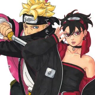 Боруто Узумаки и Сарада Учиха арт. Цвет одежды Черный, розовый и красный. 3D-сти