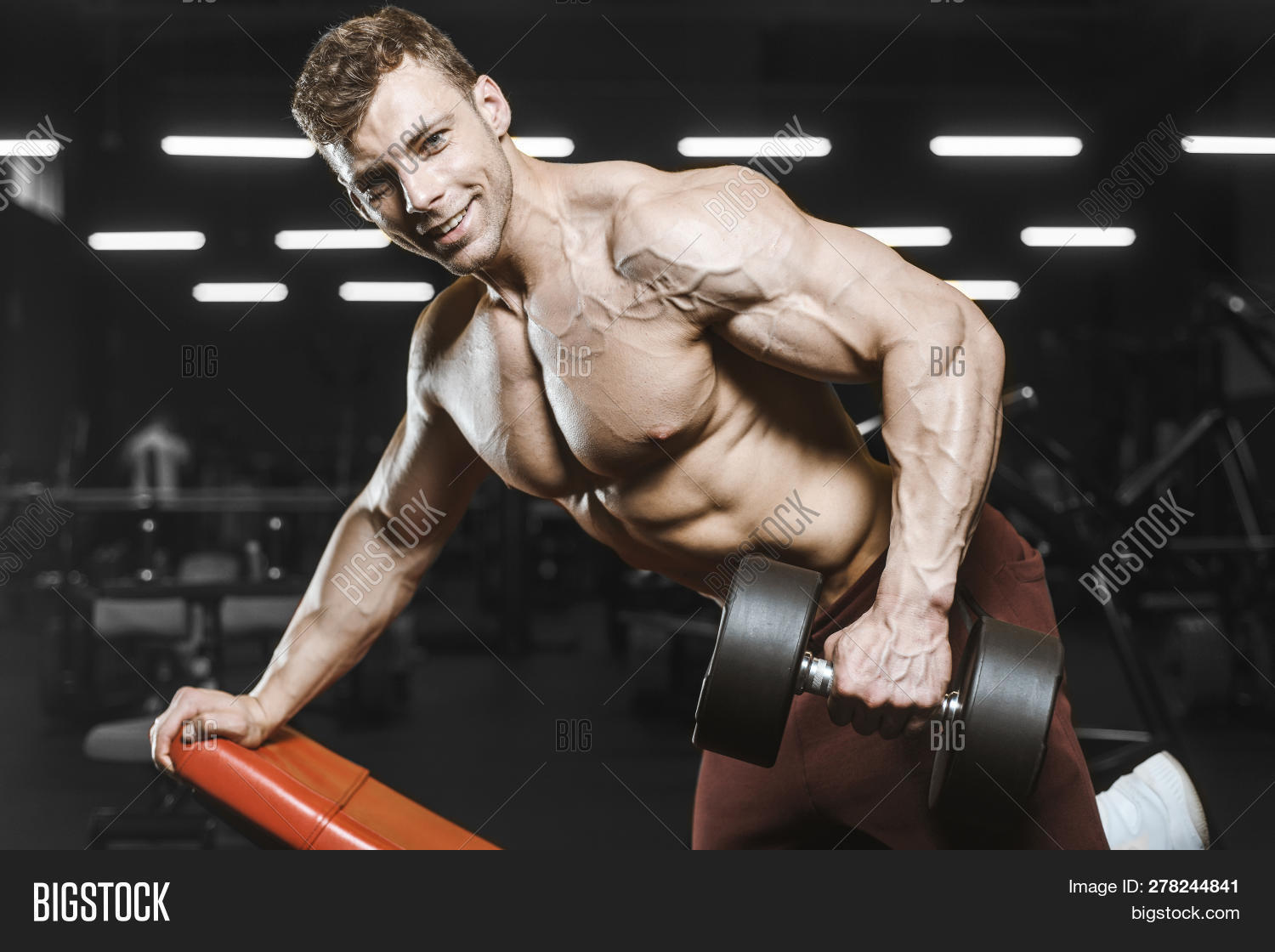 Tough Confident Man Pulls Up Dumbbell - Stock Footage SBV-338914771 - Storyblock