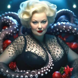 "Ursula is a very beautiful plump octopus woman in a black dress, huge beautiful